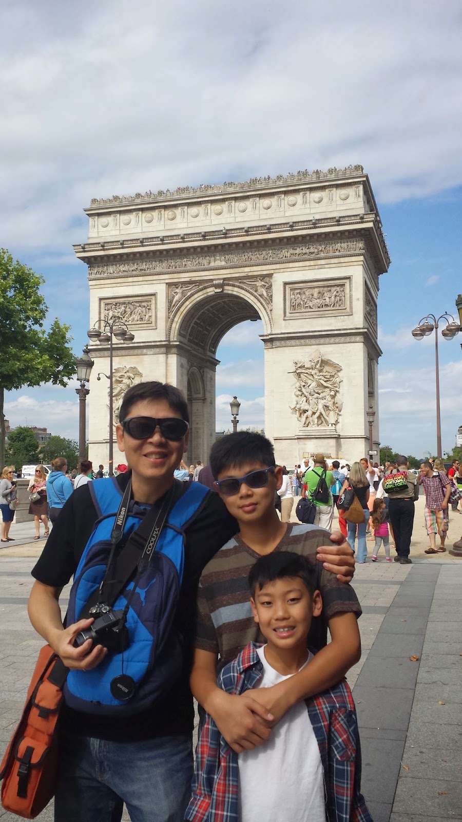 We had a good free breakfast at the hotel. Once again, we used Hop On/Hop Off Bus to go around Paris. The bus stop was by Norte Dame Cathedral. We hopped on at the bus stop by Norte Dame Cathedral and hopped off at the Arc De Triomphe or Paris Gate. From the bus stop, we had to walk underground to the Arc De Triomphe. The kids wanted to go up to the top and I didn't realize that there was no elevator. Yes we walked up stairs about 400 plus stairs. My legs were so exhausted! It was worth it to see Paris from the top and we saw Eiffel Tower too!
